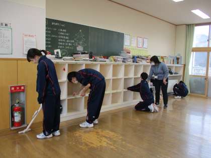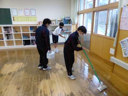 12月16日(金) 1年生の大掃除とワックスがけの様子です。
