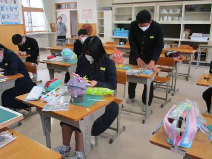 4限の授業の様子 公開日 2022/12/20 更新日 2022/12/20 日々の活動から 12月20日(火) 4限の授業の様子です。 1年生と3年生は、保健体育でサッカーのパス練習をしていました。 2年生は、美術でランプシェードの最後の味付けをしていました。 完成までもう1歩のようでした。