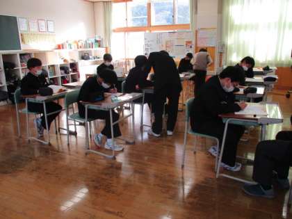 6限の授業の様子 公開日 2022/12/20 更新日 2022/12/20 日々の活動から 12月20日(火) 6限の授業の様子です。 1年生は、数学でこれまでの復習をしていました。 2年生は、保健体育で「ひざ車を身に付けよう」という内容の授業でした。 3年生は、理科で天体について学んでいました。