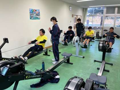 ボート部 公開日 2023/01/06 更新日 2023/01/06 日々の活動から 1月6日(金) 新年最初の部活動です。 ボート部は腹筋トレーニングやエルゴマシン、体幹トレーニングなどに取り組んでいました。 来週から3学期がスタートします。寒い日が続きますが、元気にがんばっていきましょう。