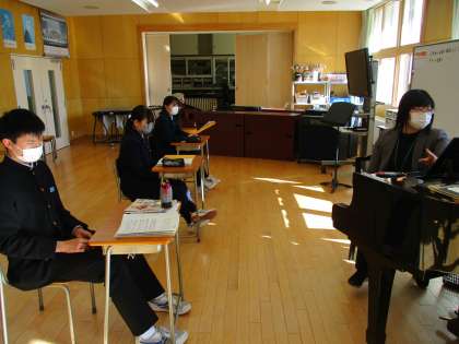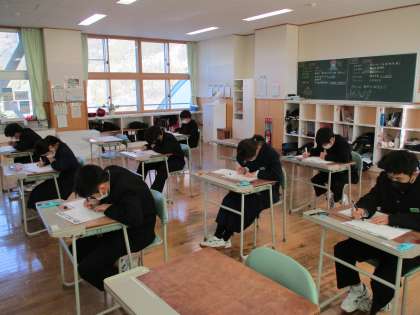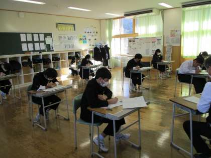 5限の授業の様子 公開日 2023/01/11 更新日 2023/01/11 日々の活動から 1月11日(水) 1年生は、数学で冬休み明けテストをしていました。 2年生は、理科でテキストテストをしていました。 3年生は、音楽で音程の確認をしていました。