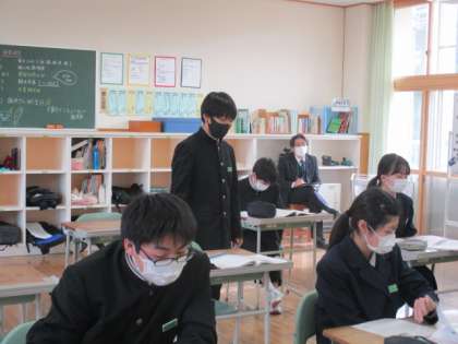 4限の授業の様子 公開日 2023/01/13 更新日 2023/01/13 日々の活動から 1月13日(金) 1年生は、道徳で「どうせ無理という言葉に負けない」という内容の授業でした。 2・3年生は、合同の保健体育でバレーボールのトス練習でした。