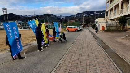 寒い中ですが、登校する人に声をかけていました。