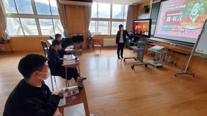 1限の授業の様子 公開日 2023/01/23 更新日 2023/01/23 日々の活動から 1月23日(月) 1年生は、数学で回転体の学習をしていました。各自がタブレットを使ってシミュレーションをしました。 2年生は、保健体育で「応急手当の基本」という内容の授業でした。 3年生は、音楽で「能の特徴を知り、雰囲気を感じとろう」という内容の授業でした。