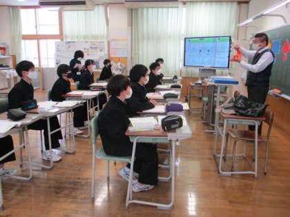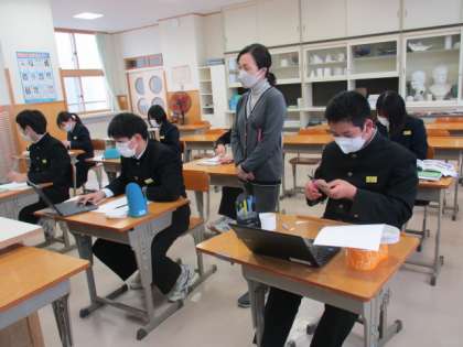1年生は、数学で「立体の展開図」という内容の授業でした。
