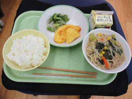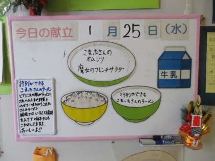 給食メニューと放送室 公開日 2023/01/25 更新日 2023/01/25 日々の活動から 1月25日(水) 給食メニューです。今日の給食は、「こまったさん」から ごはん、牛乳、こまったさんのオムレツ、魔女のフレンチサラダ、行列ができるこまったさんのラーメンです。ラーメンはみそ味でした。 放送当番の様子です。