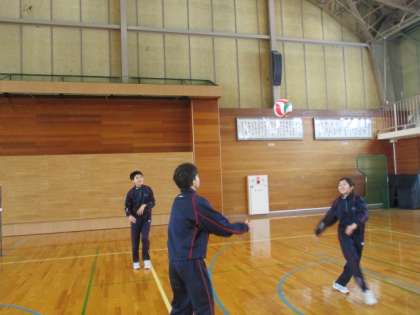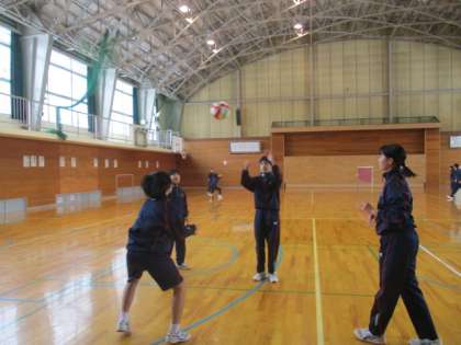 1・3年生は、合同の保健体育でバレーボールのパス練習をしていました。