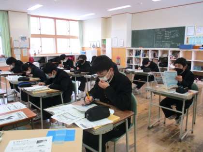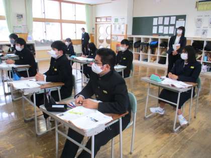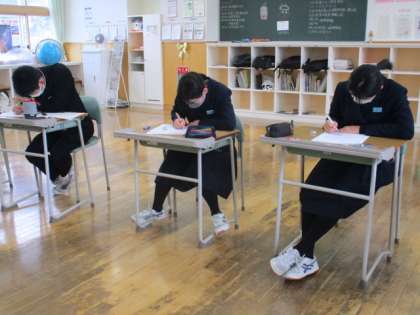 5限の授業の様子 公開日 2023/01/27 更新日 2023/01/27 日々の活動から 1月27日(金) 1年生は、理科で「音の性質のまとめ」という内容の授業でした。 2年生は、英語でした。「Why are they called Blue?」 3年生は、数学でこれまでの復習をしていました。