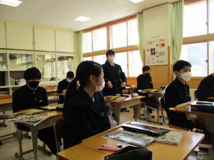 1年生は、美術で「風神雷神」の屏風絵と仏像の絵を見比べて気づいたことを発表していました。