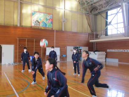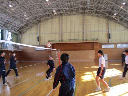 2・3年生は、合同の保健体育でバレーボールの試合をしてました。