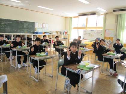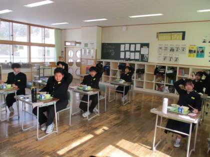 2月2日(木) 1・2年生の給食の様子です。 3年生は、お弁当です。