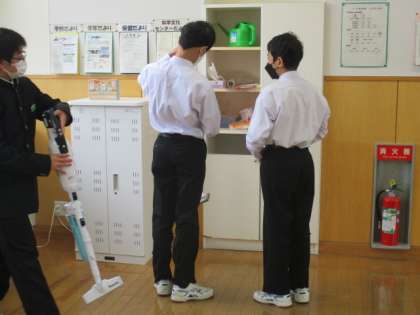 清掃の様子 公開日 2023/02/03 更新日 2023/02/03 日々の活動から 2月3日(金) 本日午後から新入生説明会があるため、臨時に清掃を行いました。 在校生は、新入生を気持ちよく迎えられるように清掃しました。