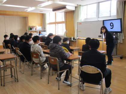 新入生の体験授業の様子 公開日 2023/02/03 更新日 2023/02/03 日々の活動から 2月3日(金) 英語の授業を音楽室で体験しました。 内容は「英語でのいろいろな数の言い方」でした。 和気あいあいで、楽しそうでした。 4月に元気よく登校してきてくれることを期待しています。