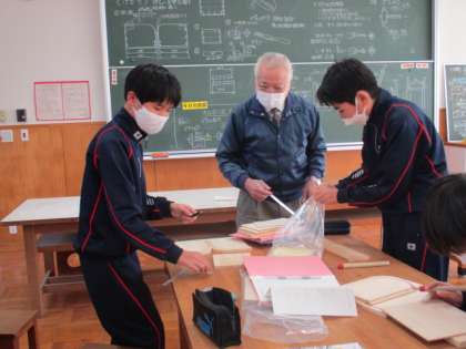 4限の授業の様子 公開日 2023/02/06 更新日 2023/02/06 日々の活動から 2月6日(月) 1年生は、技術でシャッターボックスの製作をしていました。 2年生は、理科で「解論流れる電流」という内容の授業でした。 3年生は、英語で「子どもはゲームをするべきではない」と言うことに対して英語でディベートしていました。