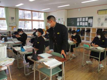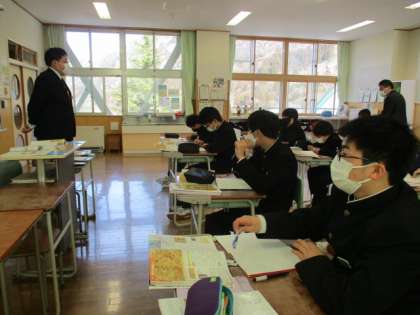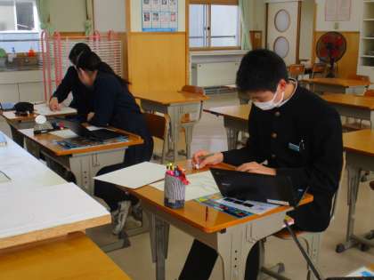3限の授業の様子 公開日 2023/02/07 更新日 2023/02/07 日々の活動から 2月7日(火) 1年生は、社会で「本能寺の変」という内容の授業でした。 2年生は、英語で「水の都ベニスが直面している問題は?」という内容の授業でした。 3年生は、美術で蝶や鯨のデッサンをしていました。