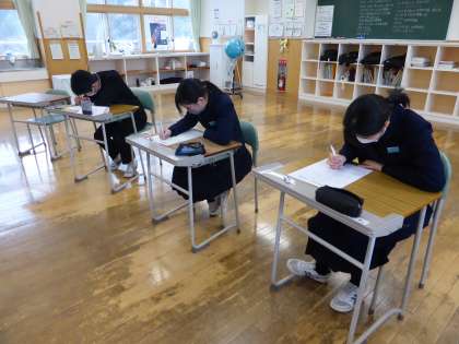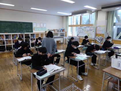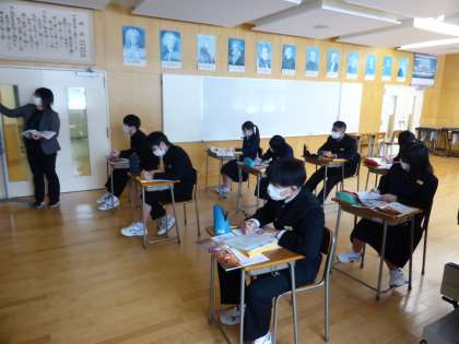 1限の授業の様子 公開日 2023/02/08 更新日 2023/02/08 日々の活動から 2月8日(水) 1年生は、英語で「冬休みにしたことをたずね合おう」という内容の授業でした。 2年生は、音楽で「歌舞伎について詳しく知ろう」という内容の授業でした。 3年生は、数学でこれまでの復習をしていました。