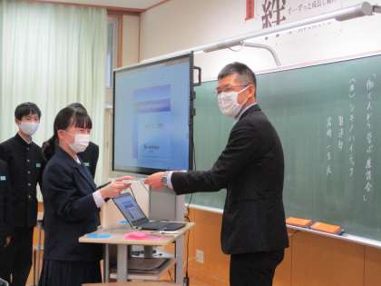 会社で製造しておられる小型カメラを見せていただきました。「ぼくも作ってみたい」と思った生徒がいました。