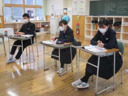 2限の授業の様子 公開日 2023/02/10 更新日 2023/02/10 日々の活動から 2月10日(金) 1年生は、家庭科で「持続可能な食生活」という内容の授業でした。 2年生は、国語で「走れメロスの作品の魅力を見付けよう」という内容の授業でした。 3年生は、理科で「自然の中の生物・生態系について考えよう」という内容の授業でした。