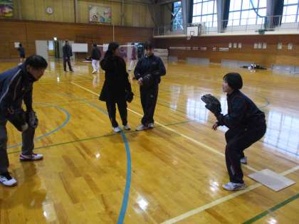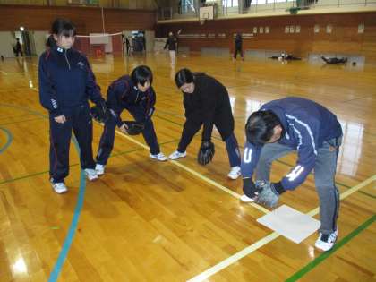 ソフトボール部 公開日 2023/02/10 更新日 2023/02/10 日々の活動から 2月10日(金) 本日のソフトボール部の活動の様子です。 室内用のベースを置いて、タッチプレーについてのルールを確認しました。