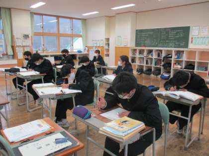 5限の授業の様子 公開日 2023/02/13 更新日 2023/02/13 日々の活動から 2月13日(月) 1年生は、理科で「力のつり合いについて」という内容の授業でした。 2年生は、社会で「日露戦争」という内容の授業でした。 3年生は、英語でスティーブジョブズのスピーチを読んでいました。