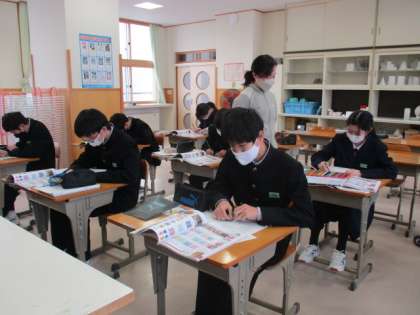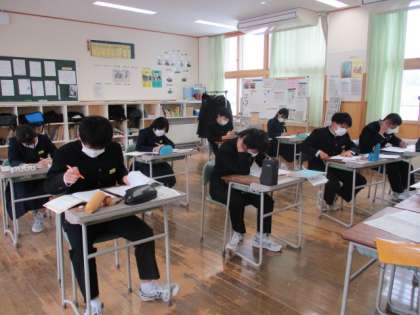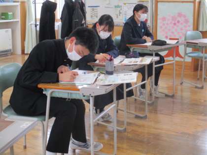 2限の授業の様子 公開日 2023/02/14 更新日 2023/02/14 日々の活動から 2月14日(火) 1年生は、美術で「和の文様」をスケッチしていました。 2年生は、数学でこれまでの復習をしていました。 3年生は、理科で「生態系における生物の関係について考えよう」という内容の授業でした。