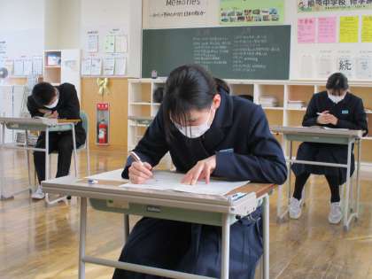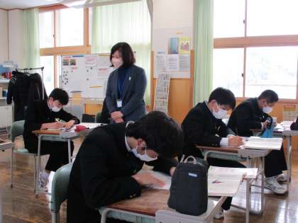 1限の授業の様子 公開日 2023/02/15 更新日 2023/02/15 日々の活動から 2月15日(水) 1年生は、英語でbe動詞の過去形について学んでいました。 2年生は、国語で「話し言葉と書き言葉の特徴をとらえて生かそう」という内容の授業でした。 3年生は、英語の学年末考査でした。