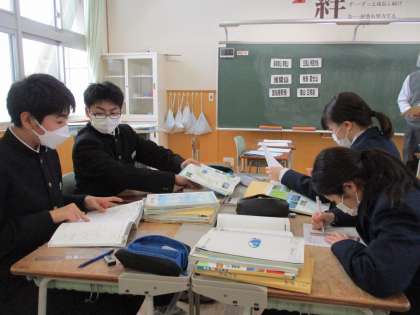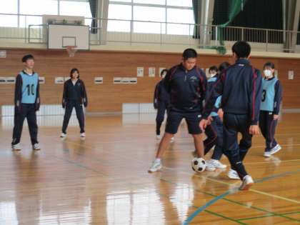 5限の授業の様子 公開日 2023/02/15 更新日 2023/02/15 日々の活動から 2月15日(水) 1年生は、理科でこれまでの復習をしていました。 2・3年生は、保健体育でサッカーの試合をしていました。
