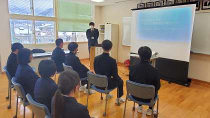 薬物乱用防止教室 公開日 2023/02/15 更新日 2023/02/15 日々の活動から 6時間目に警察本部生活安全部少年女性安全課少年サポートセンター東部分室の佐々木さんをお招きし、2年生を対象とした薬物乱用防止教室を行いました。 薬物の特性や依存性のお話や誘われたときの断り方のロールプレイをしました。 もしものことがあったら、断るだけでなく、すぐにその場から逃げるということを教えていただきました。