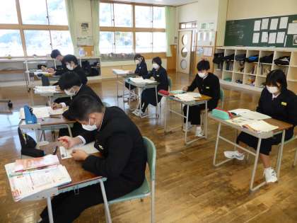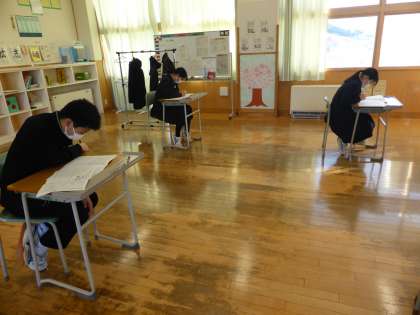 1年生は、社会で学年末考査に向けて各自が必要なことをしていました。