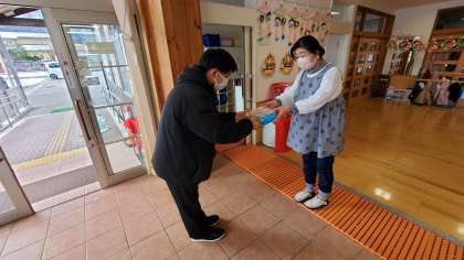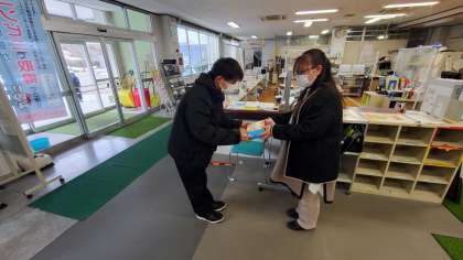 生徒会執行部の代表が地域の施設へ書き損じはがきBOXの回収に伺いました。