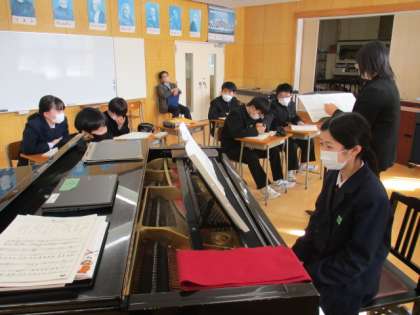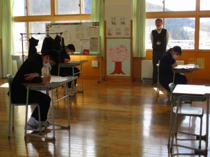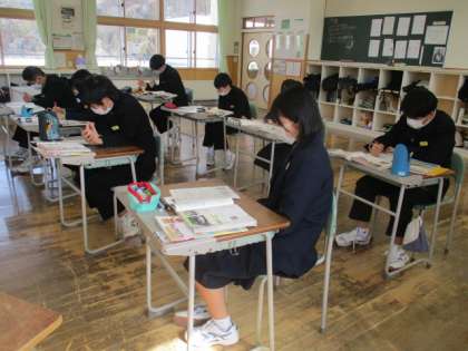 3限の授業の様子 公開日 2023/02/17 更新日 2023/02/17 日々の活動から 2月16日(木) 1年生は、音楽で合唱練習をしていました。 2年生は、道徳で平和学習をしていました。 3年生は、理科の学年末考査でした。