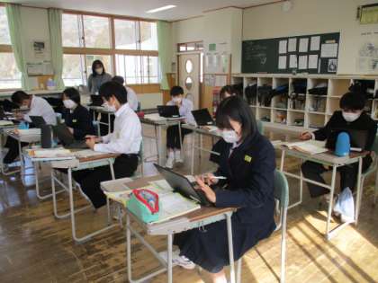 5限の授業の様子 公開日 2023/02/17 更新日 2023/02/17 日々の活動から 2月16日(木) 1年生は、社会でこれまでの復習をしていました。 2年生は、英語「富山の穴場スポットを考え、英語で表現しよう」という内容の授業でした。 3年生は、理科「身近な自然環境の調査について考えよう」という内容の授業でした。