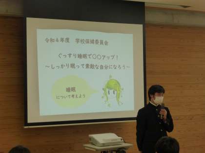 学校保健委員会 1 公開日 2023/02/20 更新日 2023/02/20 日々の活動から 2月20日(月) 多目的室にて、次の方々をお招きして、学校保健委員会を実施しました。 大沢野保健福祉センター 保健師 大谷麻菜花さん 学校歯科医:米沢郁子さん 学校薬剤師:村松菜穂子さん 始めに厚生実践部の発表がありました。