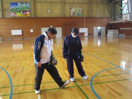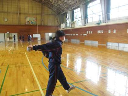 3月1日(木) 本日のソフトボール部の活動の様子です。 体育館で、ボールの投げ方の基本を確認しました。