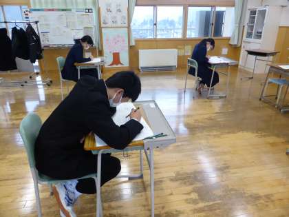 1限の授業の様子 公開日 2023/03/02 更新日 2023/03/02 日々の活動から 3月2日(木) 1年生は、社会で地図を広げて、高校の場所や他の中学校の場所を調べていました。 2年生は、英語でALTの先生とスピーキングテストをしていました。 3年生は、英語の確認テストでした。