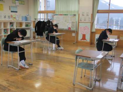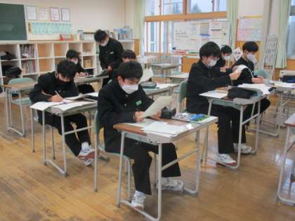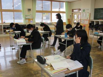 2限の授業の様子 公開日 2023/03/02 更新日 2023/03/02 日々の活動から 3月2日(木) 1年生は、英語でALTの先生とスピーキングテストをしていました。 2年生は、国語で「助動詞について知ろう」という内容の授業でした。 3年生は、数学の確認テストでした。