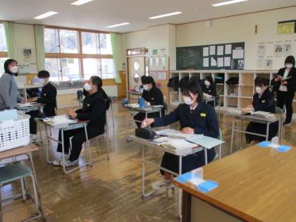 2限の授業の様子 公開日 2023/03/06 更新日 2023/03/06 日々の活動から 3月6日(月) 1年生は、保健体育でサッカーのミニゲームをしていました。 2年生は、英語で「道夫さんはシュシュマレフ村で、どのような経験をしたのだろう?」という内容の授業でした。 3年生は、理科で「新しい衣服の素材について」という内容の授業でした。