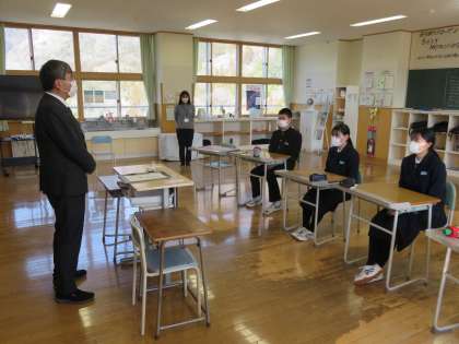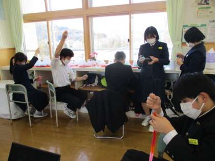 6限の授業の様子 2・3年生 公開日 2023/03/06 更新日 2023/03/06 日々の活動から 3月6日(月) 2年生は、学級活動で鶴の飾りと千羽鶴制作の続きでした。 3年生は、楡の木タイムで入試の激励会がありました。