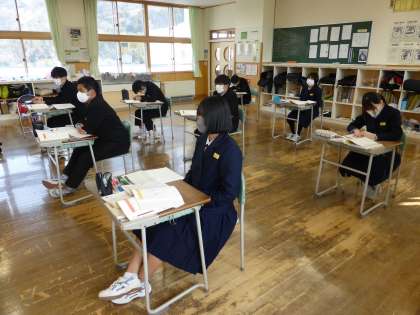 1限の授業の様子 公開日 2023/03/08 更新日 2023/03/08 日々の活動から 3月8日(水) 1年生は、楡の木タイムで各自が必要なことをしていました。 2年生は、国語で「助動詞の問題に慣れよう」という内容の授業でした。