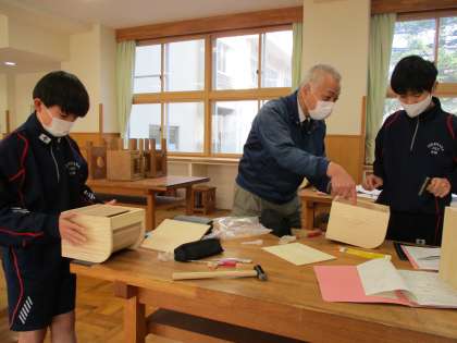 1年生は、今年度最後の技術でシャッターボックスが完成しました。今日自宅に持ち帰ります。自宅で有効に活用してください。