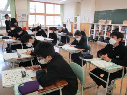 1年生は、英語で「レストランで注文をとったり、料理をたのんだりしよう」という内容の授業でした。
