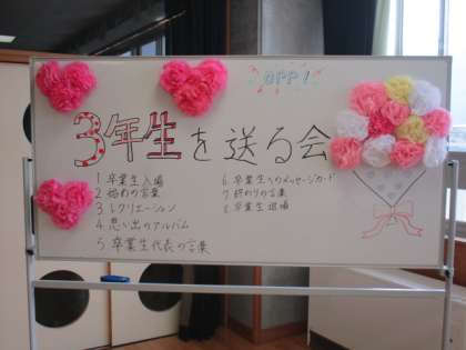 多目的室で、全校生徒が「3年生を送る会」に参加しました。
