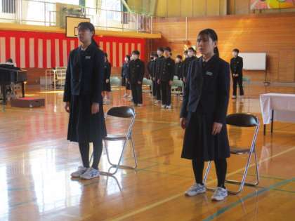 3・4限の授業の様子 2 公開日 2023/03/14 更新日 2023/03/14 日々の活動から 卒業式の予行練習をしました。 入場から退場まで通して練習しました。 答辞の後の歌では、3年生だけで歌うパートがあります。 明日は、その部分に聞き耳を立ててください。