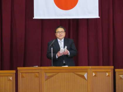 式辞、祝辞、神通峡地域/教育振興会からの記念品授与の様子です。