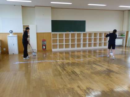 環境実践部員が、各教室と視聴覚室のワックスがけをしてくれました。