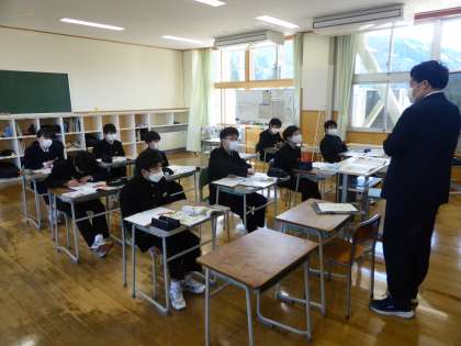 1限の授業の様子 公開日 2023/03/20 更新日 2023/03/20 日々の活動から 3月20日(月) 1年生は、社会で「人々への統制」という内容の授業でした。 2年生は、理科で自主学習をしていました。