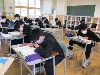 3月20日(月) 1年生は、数学でこれまでの復習をしていました。 2年生は、理科で復習をしていました。