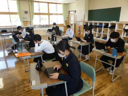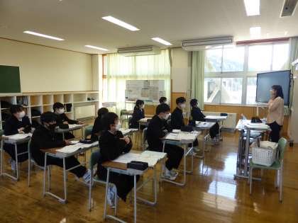 5限の授業の様子 公開日 2023/03/22 更新日 2023/03/22 日々の活動から 3月22日(水) 1年生は、英語で「City Lightsの結末は?」という内容の授業でした。 2年生は、楡の木タイムで生徒会の前期活動計画案を考えていました。