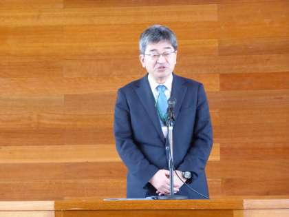 校長は、式辞の中で「中学校は大人になるための学校です。大谷翔平選手が高校時代に立てた目標は8球団からドラフト1位指名されることでした。そのためにどうするかという細かい目標を立てて努力した結果、今があります。みなさんも新しい学年で新しい目標に向かってがんばってください。」と話しました。