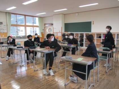 2限の学級活動の様子 公開日 2023/04/07 更新日 2023/04/07 日々の活動から 4月7日(金) 2年生は、今学期の目標を発表していました。 3年生は、修学旅行のしおりについて確認していました。